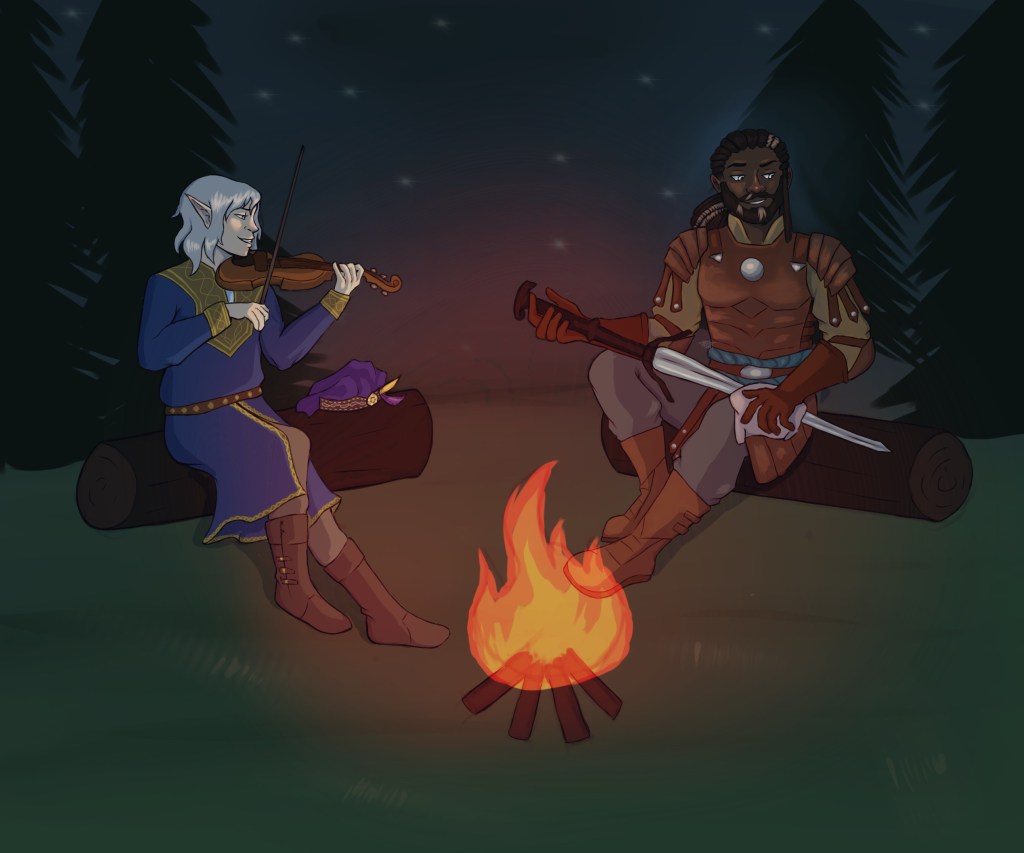 In the land of Tolria there resides a Bard and a Guard, two traveling companions who seek to see the world, giving performances and engaging in heroics wherever they find themselves. The two have spread their names far and wide as a pair of mischievous do-gooders, who are always ready to take up arms against the evils of oppression and hopelessness. A duo so dauntless that in some places of the land their names are synonymous with bravery and heroism. With chilling might and wondrous talent they brave their adversaries, bringing steel and song down upon their dastardly victims. The pair that is so grand, so fierce tha-